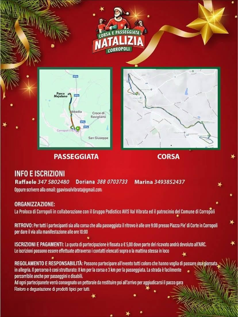 La magia del Natale incontra lo sport e la solidarietà a Corropoli. Domenica 14 dicembre 2025 si rinnova l’appuntamento con la Corsa e Passeggiata Natalizia, giunta alla sua seconda edizione in memoria di Andrea Sammassimo.